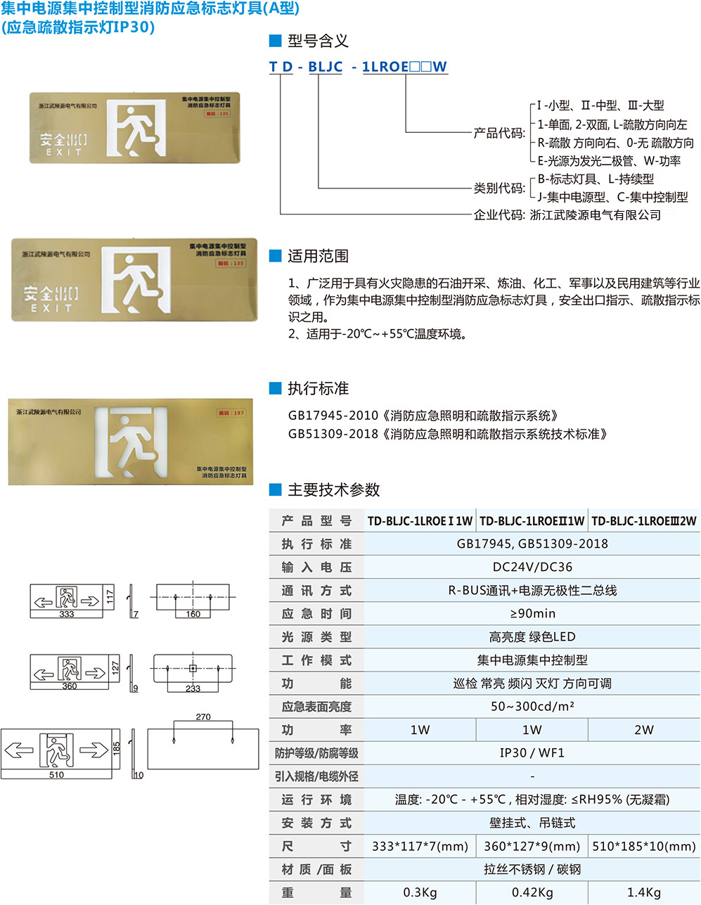 集中电源集中控制型消防应急标志灯具(A型)(应急疏散指示灯IP30)