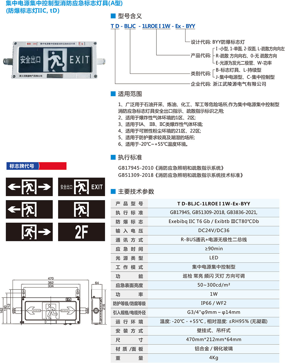 集中电源集中控制型消防应急标志灯具(A型)(防爆标志灯IIC, tD)