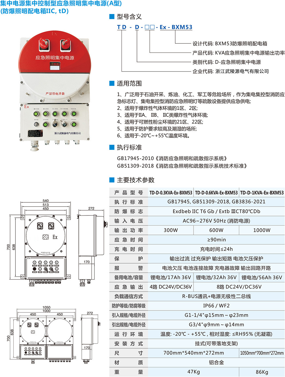 集中电源集中控制型应急照明集中电源(A型)(防爆照明配电箱IIC, tD)